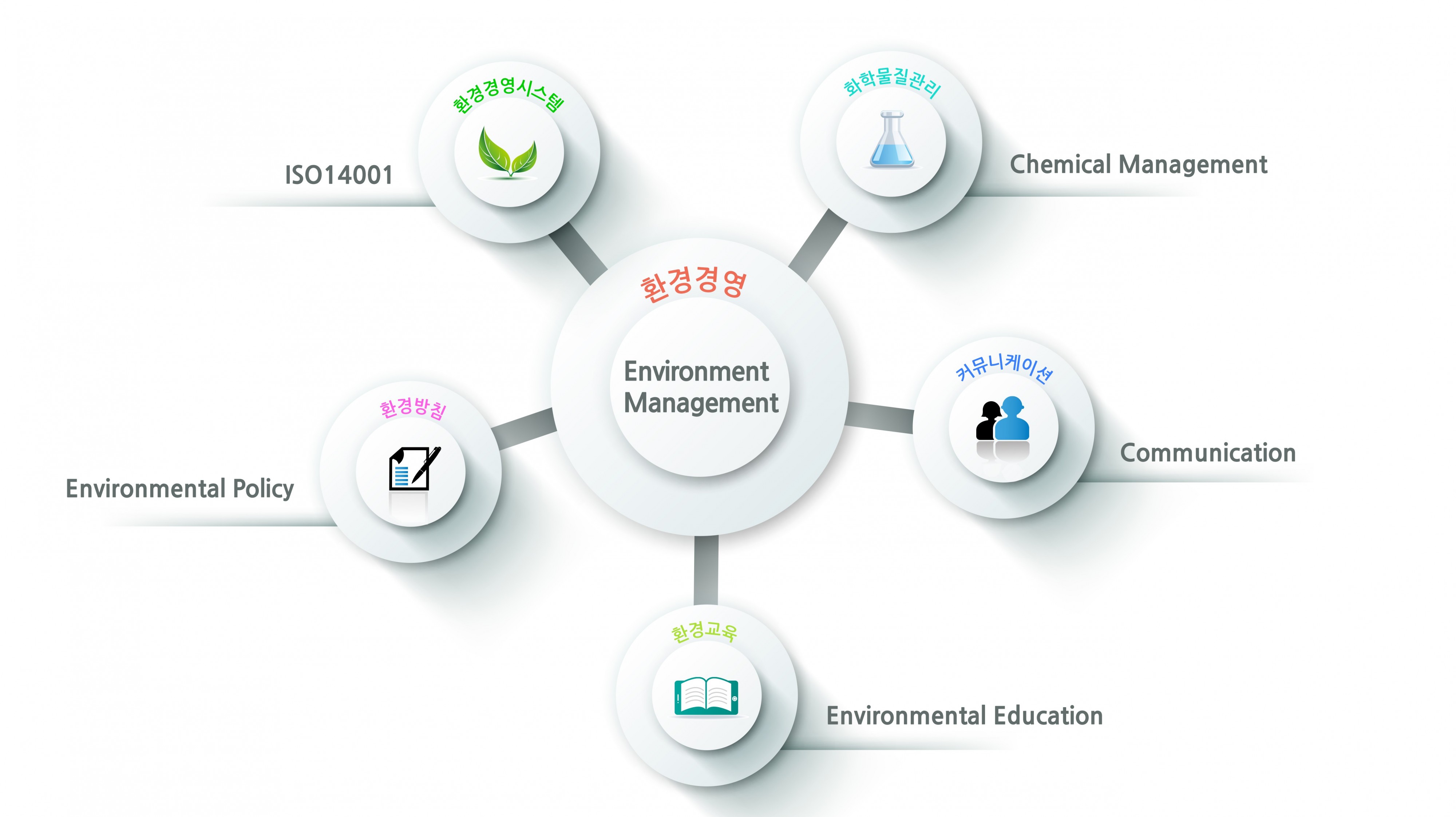 모든 임직원은 환경법규 준수와 법적 규제치 보다 강화된 자체관리 기준을 설정하고 이를 달성하기 위해 발생량 저감, 재사용, 재 순환을 적극적으로 실행하여 지속적인 환경개선을 추진한다.